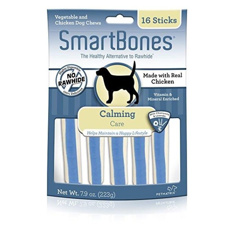 Rawhide Free, Made with Real Chicken, Chamomile and Lavender for a scrumptious taste, Calming Care, Vitamin & Mineral Enriched.