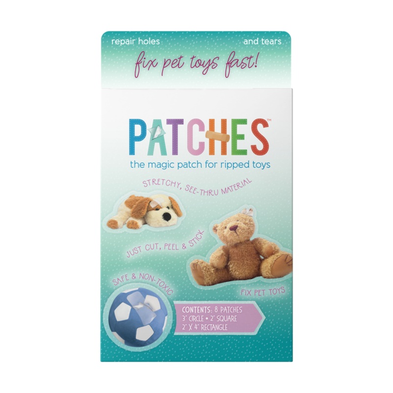 Don't let a hole or tear trash your pet's favorite toy. Patches can mend practically any surface like magic! These clear, flexible strips are made from a super-stretchy elastic material which resists biting and chewing. And since they're backed by a strong