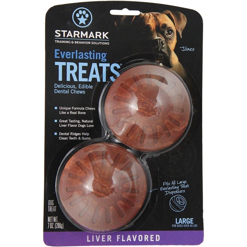 The Everlasting Treats are long lasting dental chews that are hard like a bone to help keep your dog's teeth clean. Pair them with the Starmark toys for challenging chewing fun.Chews Like a Real BoneFeatures a unique shape that your dog can lick, chew or g