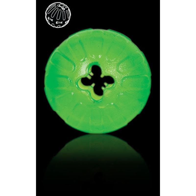 Extremely durable, but soft in your dog's mouth, the Treat Dispensing Chew Ball is ideal for feeding your dog his meals or retrieving.Holds Variety of Treats and KibbleUse in place of a food bowl to turn mealtime into playtime!Made with Virtually Indestruc
