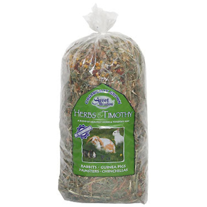 Delight your small pet with the delicious aroma of Sweet Meadow Farm Organic Herbs and Timothy Hay. Organically-grown timothy hay is mixed with fragrant and delicious chamomile and rose hips for your rabbit or guinea pig to munch on. Timothy hay is rich in