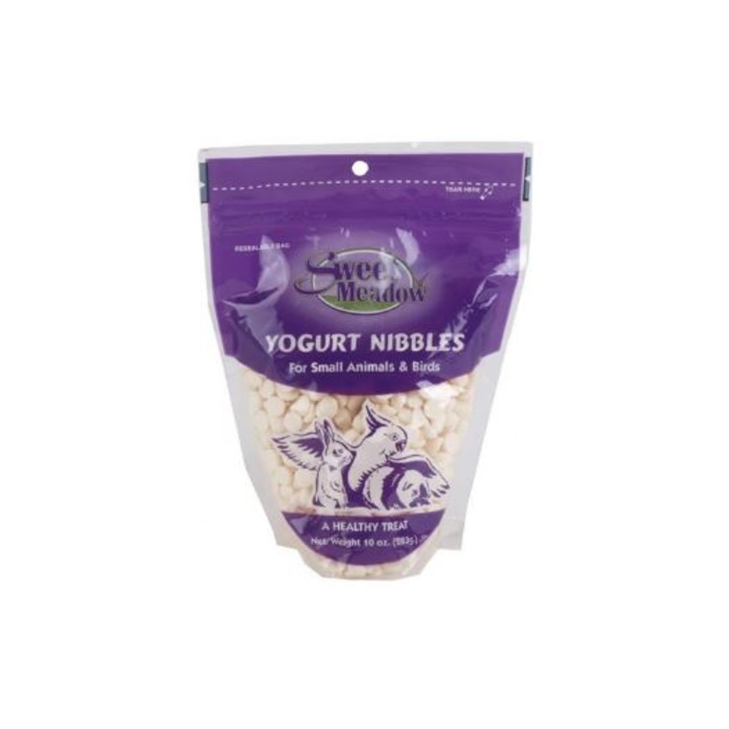 A yummy, healthy treat for small animals and birds! Natural yogurt helps aid digestion while keeping flora happy in the intestinal tract. Ingredients include sugar, whey, nonfat yogurt powder, and soy lecithin. Full ingredient list on package.
