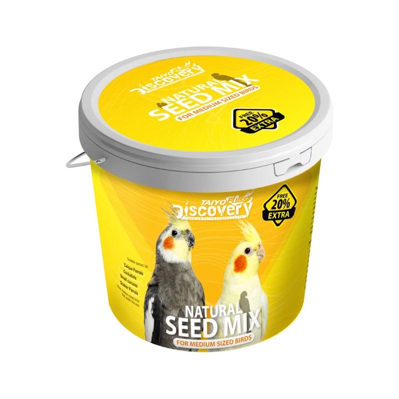 Taiyo Pluss Discovery natural seed mix is made entirely of all-natural, hand-selected ingredients. It is naturally enriched with vitamins and minerals, providing the birds with a tasty diet that meets their nutritional requirements. There are no artificial