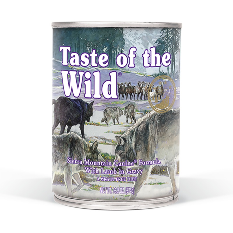 A great tasting complement to the dry Taste of the Wild recipes, the Sierra Mountain Canine Recipe with Lamb in Gravy will satisfy even the most finicky dogs. This complete and balanced formula can also be fed as your pets sole diet. Made with lamb, this f