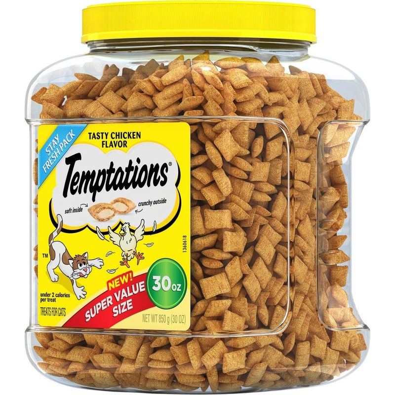 Your kitty will nuzzle up to you after tasting the savory, slow-roasted flavor of TEMPTATIONS Tasty Chicken cat treats. They have no artificial flavors and are 100% nutritionally complete.THIS IS A SPECIAL OFFER. Limited Quantities AvailableIngredientsChic
