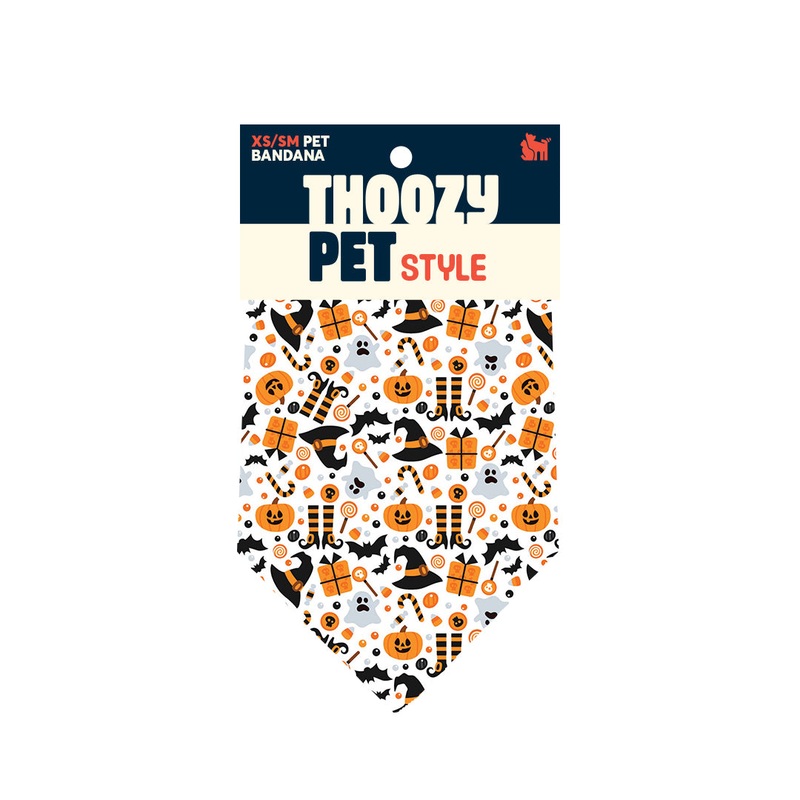 Celebrate the season in style with ThoozyPet Bandanas!Made in the USA from 100% premium cotton, these festive bandanas are soft, lightweight, and perfect for all-day wear. This spooky-cute design features pumpkins, candy corn, and bats a cozy, stylish way