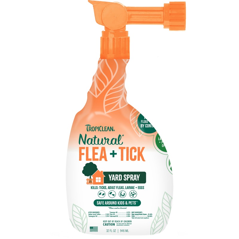 TropiClean Natural* Flea & Tick Yard Spray is guaranteed to kill fleas, ticks, and mosquitoes by contact. This natural essential oil blend contains some of nature's most powerful pest-fighting ingredients and act as a powerful, natural pest repellent for y