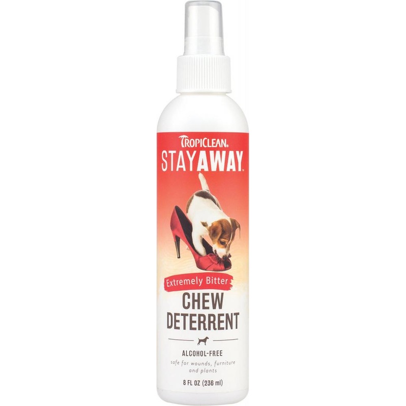 • TropiClean Stay Away tastes so bitter, it discourages animals from ever wanting to chew, bite, lick or gnaw on something coated with it.