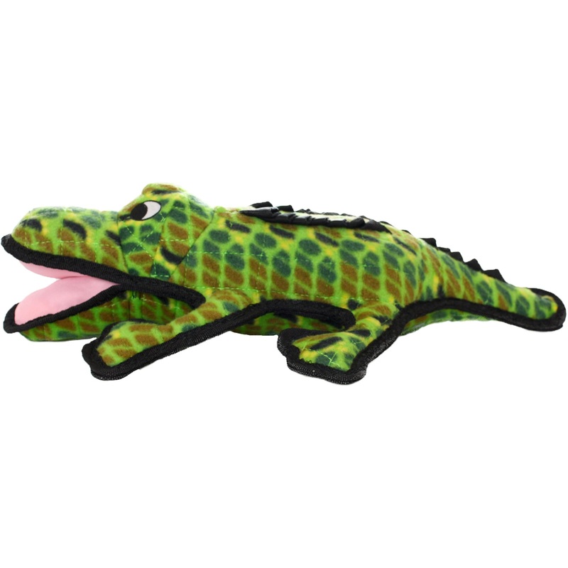 The Tuffy Ocean Creature Alligator is a great tug and fetch toy for dogs of all sizes. This toy is made with multiple layers of material that are bonded and sewn together to make one "Tuff" Layer. Each toy is then stuffed with safe, non-toxic fiber and sew
