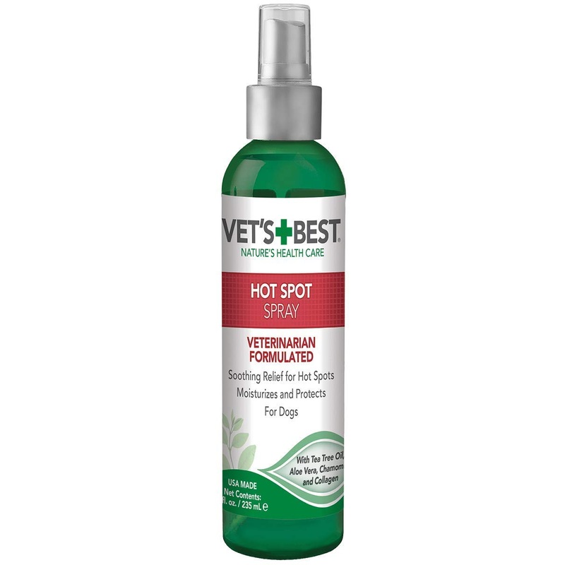 Vets Best Hot Spot Spray provides a welcome relief for your dog's itchy, dry, and irritated skin. Our veterinarian-formulated and recommended blend of natural key ingredients, including tea tree oil, aloe vera, and chamomile, provides fast relief for your