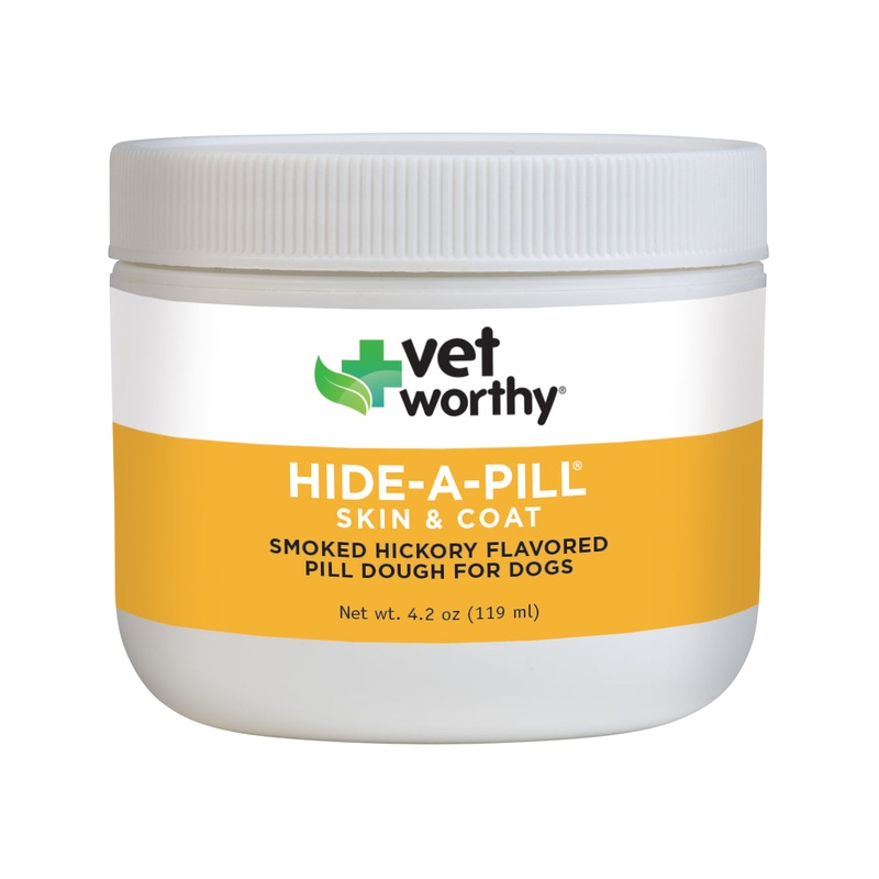 Recommended to hide medications or supplements in a tasty hickory-flavored dough your pet will think is a treat all while adding the benefits of skin and coat supporting ingredients. Unlike peanut butter, cheese and other people food used to disguise supplements and pills, this paste doesnt interfere with weight loss efforts, so theyre terrific for pets of all ages taking long-term medication. Veterinarian formulation is recommended to support healthy skin and coat with Omega Fatty Acids and is an enticing hickory flavored pill dough that dogs love.