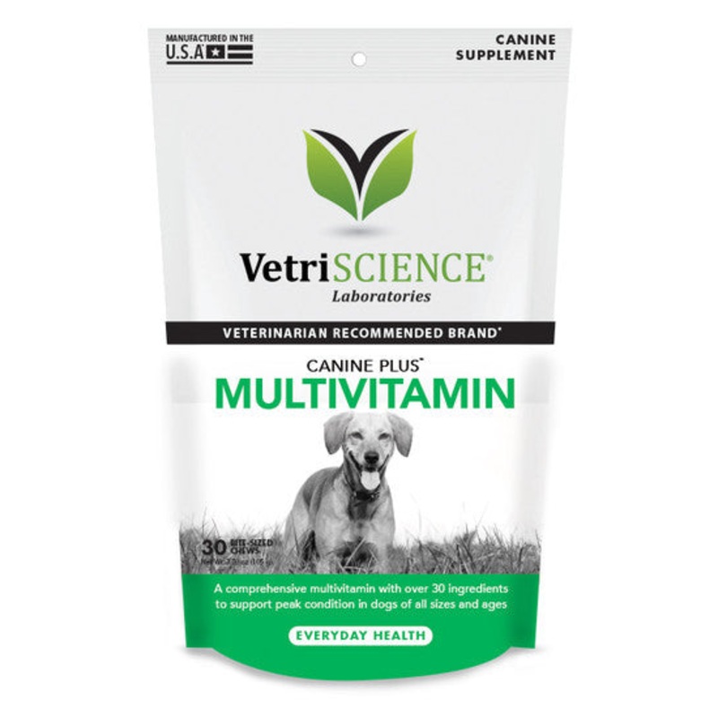 Canine Plus Multivitamin for dogs provides the added nutrients, vitamins and antioxidants that are often not found in traditional commercial dog foods. Formulated with a balance of amino acids, fish oil omegas and B vitamins these chews are designed to hel