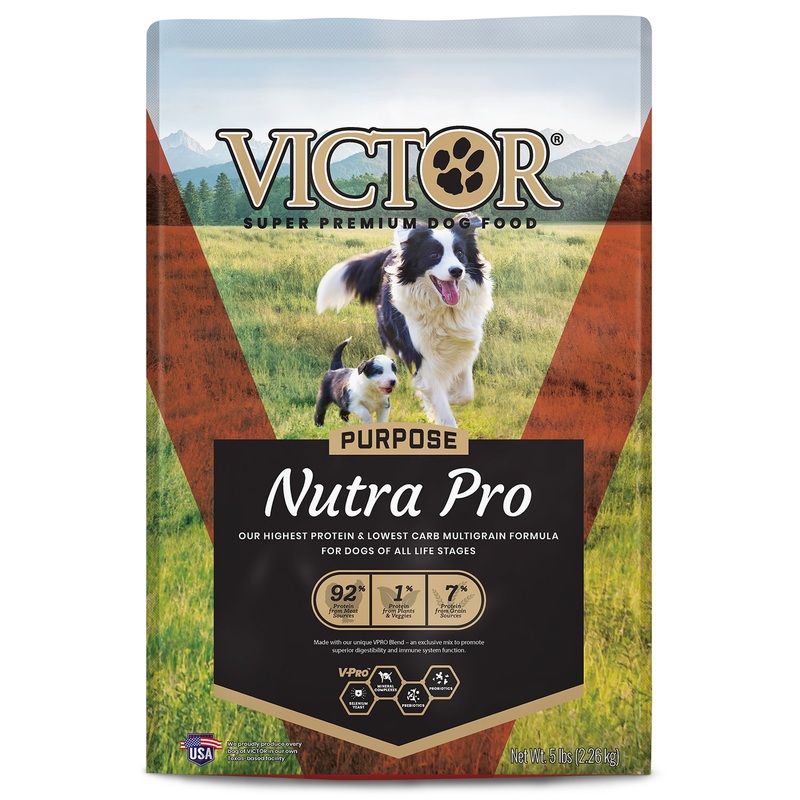 VICTOR Nutra Pro is an excellent choice for dogs with moderate to high levels of daily activity. This high-protein, nutrient-dense recipe is specially formulated for growing puppies, pregnant and lactating females, and dogs with high physical demands. Nutra Pro has higher protein and lower carbohydrate levels compared to other VICTOR multigrain formulas. VICTOR Nutra Pro for Dogs is formulated to meet the nutritional levels established by the AAFCO Dog Food Nutrient Profiles for All Life Stages, including growth of large size dogs (70 lb. or more as an adult).