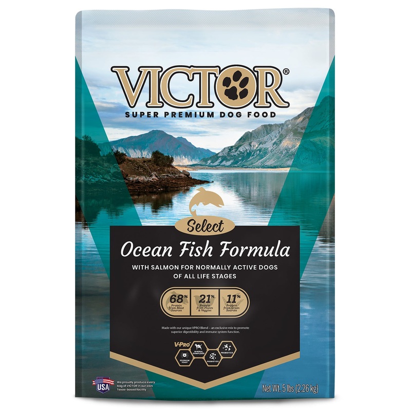 With premium-quality fish meal as the primary protein source, VICTOR Ocean Fish Formula contains significant levels of omega-3 fatty acids and other nutrients for dogs with normal activity levels. It is easy to alternate SELECT formulas to offer your dog multiple flavors throughout the year. This formula is appropriate for large and small dogs at all life stages.