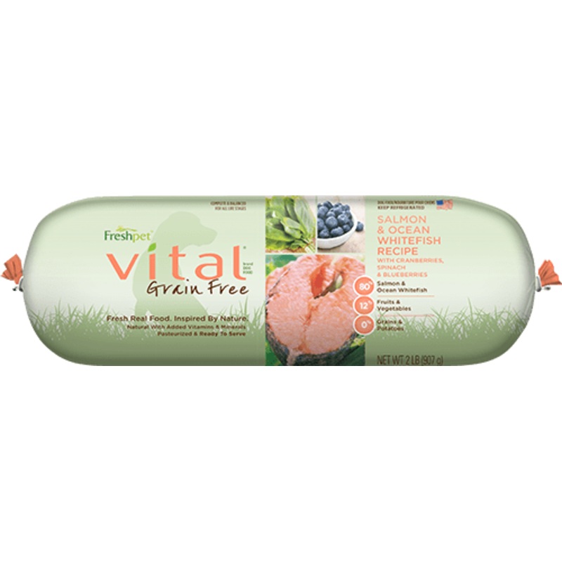 Made of proteins like salmon and ocean whitefish, and fruits loaded with antioxidants such as blueberries and cranberries, this grain free recipe is made with at least 80% animal protein to help keep your pup at their best.