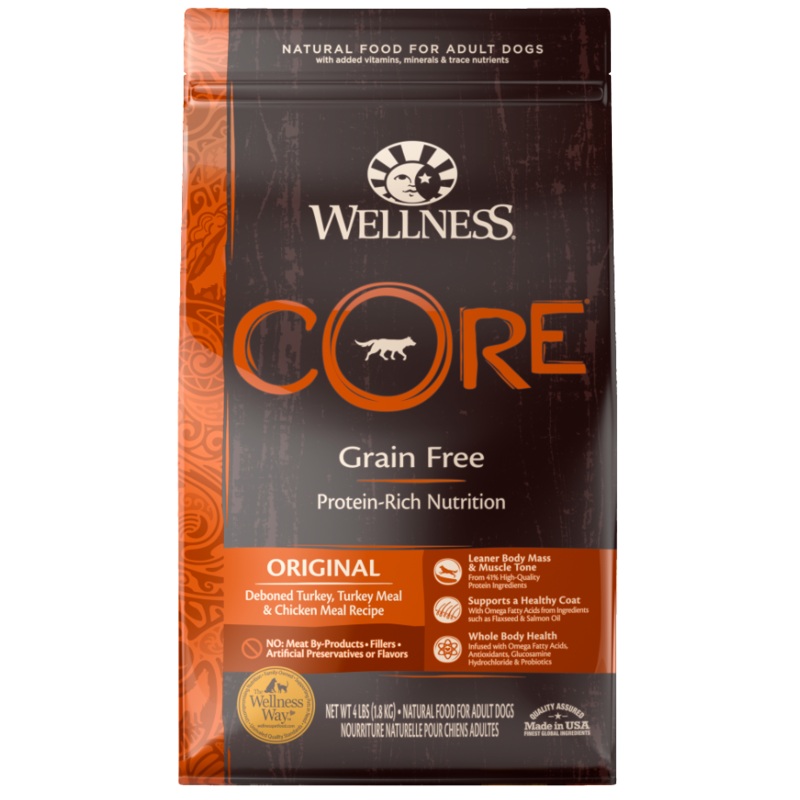 The things a pet pal needs to feel your love really are basic: lots of play, forgiveness for sneaking on the couch every once in a while, and a healthy diet full of the simple ingredients their bodies need. Wellness CORE Natural Grain Free Original Turkey