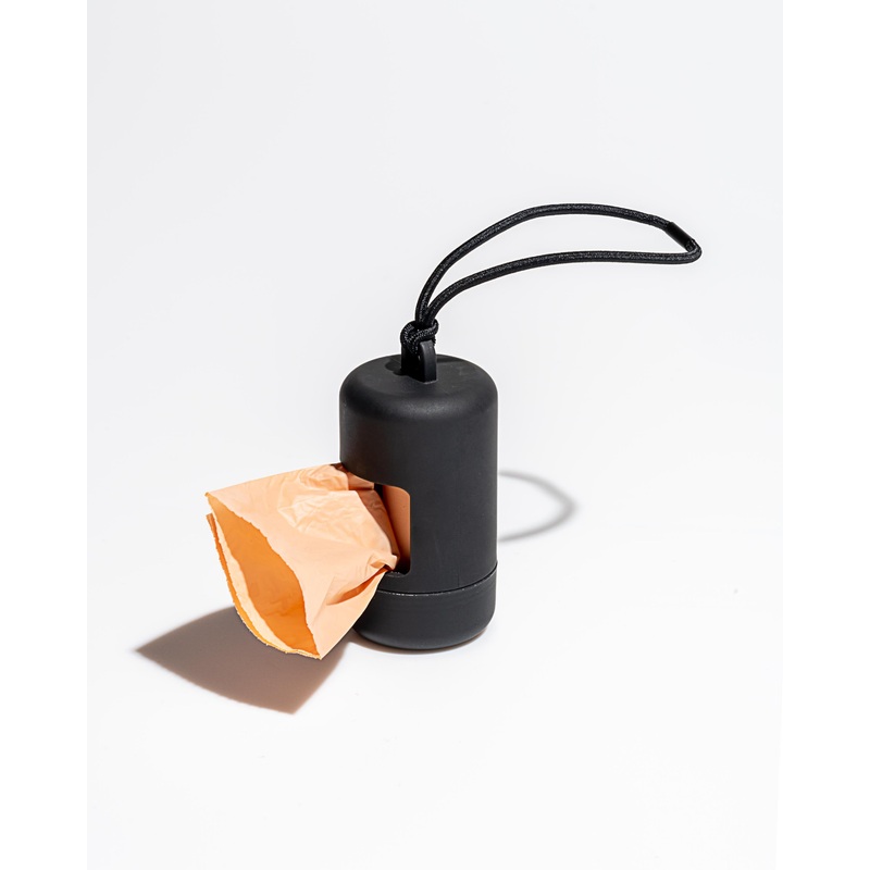 Complete with an elastic strap to easily attach onto any leash or tote, a twist top to make reloading a breeze, and a complementary roll of our eco-friendly Poop Bags!Materials: Soft-touch plastic shell and elastic band with iron clasp.