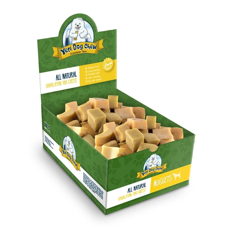Yeti Yak Nuggets are an all-natural dog treat made from fresh yak milk, cow milk and lime juice. This hard cheese is made using centuries old recipe by the people of the Himalayas. When microwaved for 60 seconds it becomes a tasty puff treat. Yeti Yak Nugg